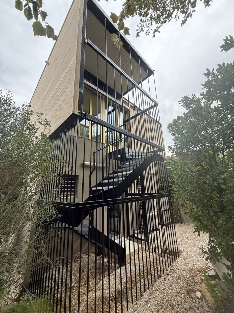 ✔ Escalier de secours : Conforme aux normes de sécurité, pour les bâtiments professionnels ou collectifs.