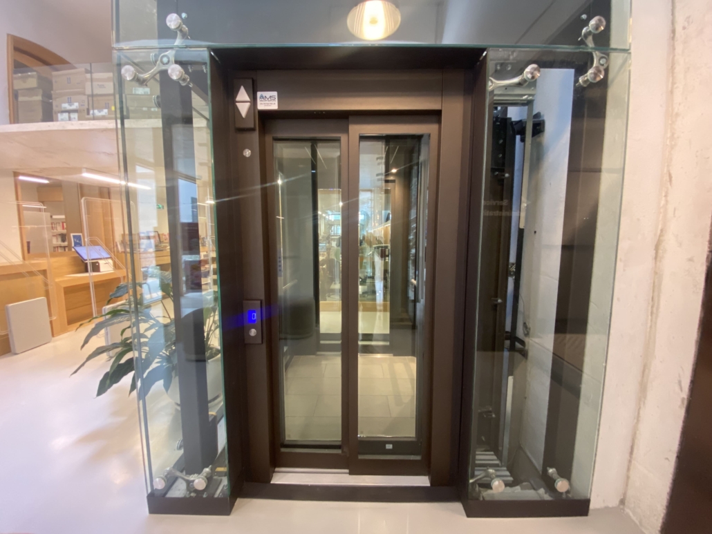 - Cage d’ascenseur en acier de 10 mètres de haut, traversant trois niveaux du bâtiment